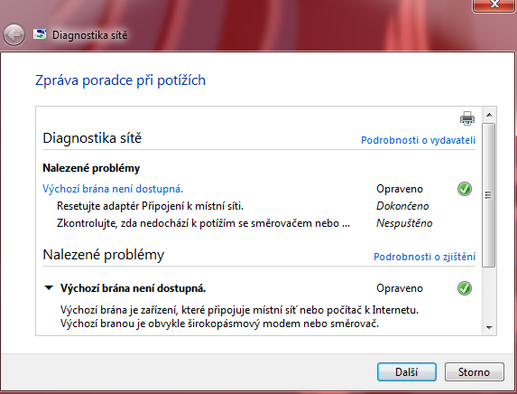 mam windows 7 proffesional 64 bit. Posledni dobou se mi casto stava ze vypadne internet, ale jen me na mem PC, na ostatnich PC v stejne siti - stejny router - jede net bez vypadku dal. A uz mi nenaskoci, naskoci, az dam vpravo dole pravy klik na "sit" a opravit problem. Problem se vzdy opravi. Tabulka co vyskoci po oprave viz screen. Taky jsem dal zobrazit podrobnosti, to tu nakonci zkopiruji.