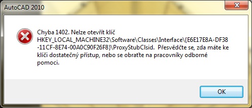 AutoCAD - chyba při instalaci