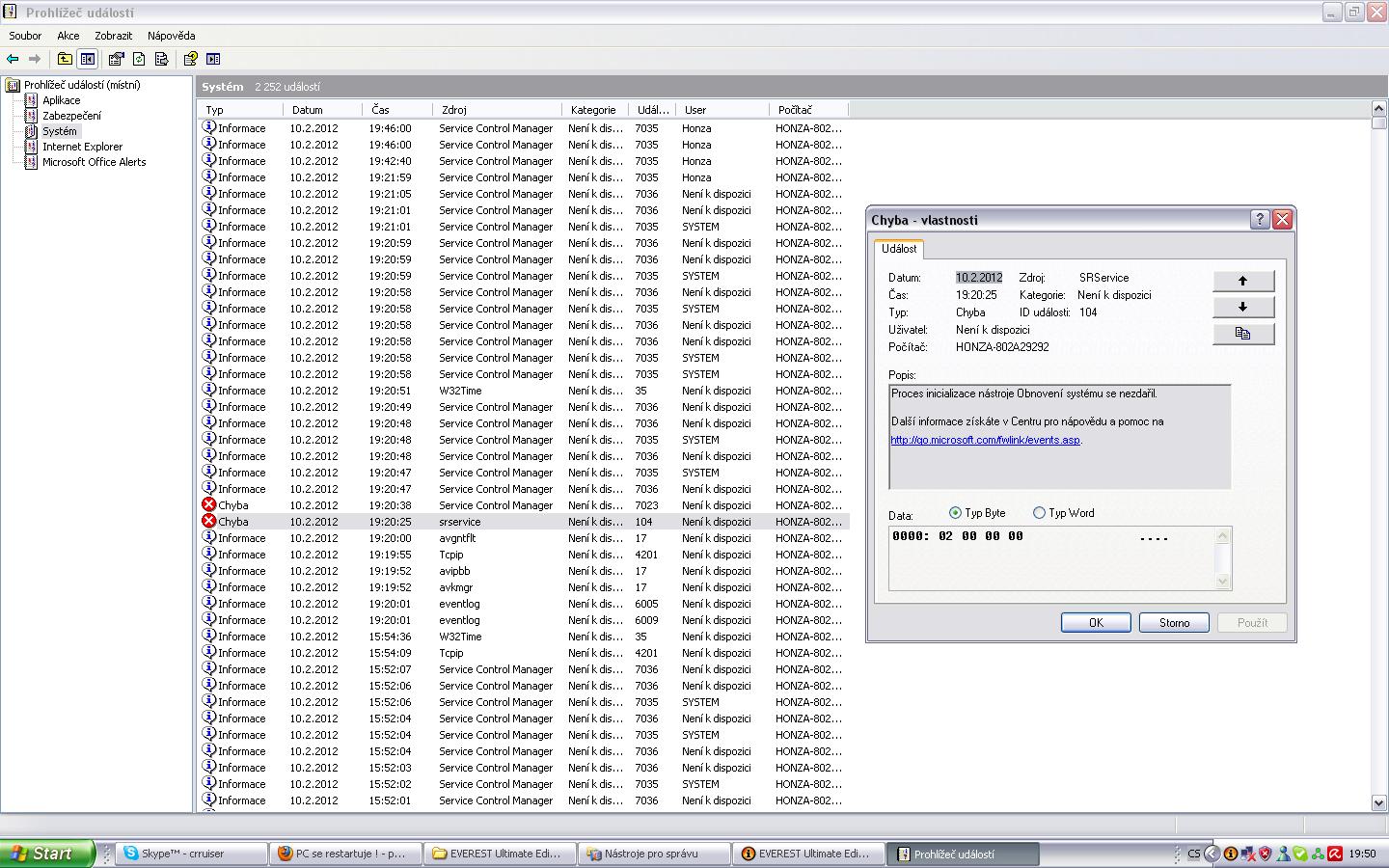Podívej se do prohlížeče událostí.