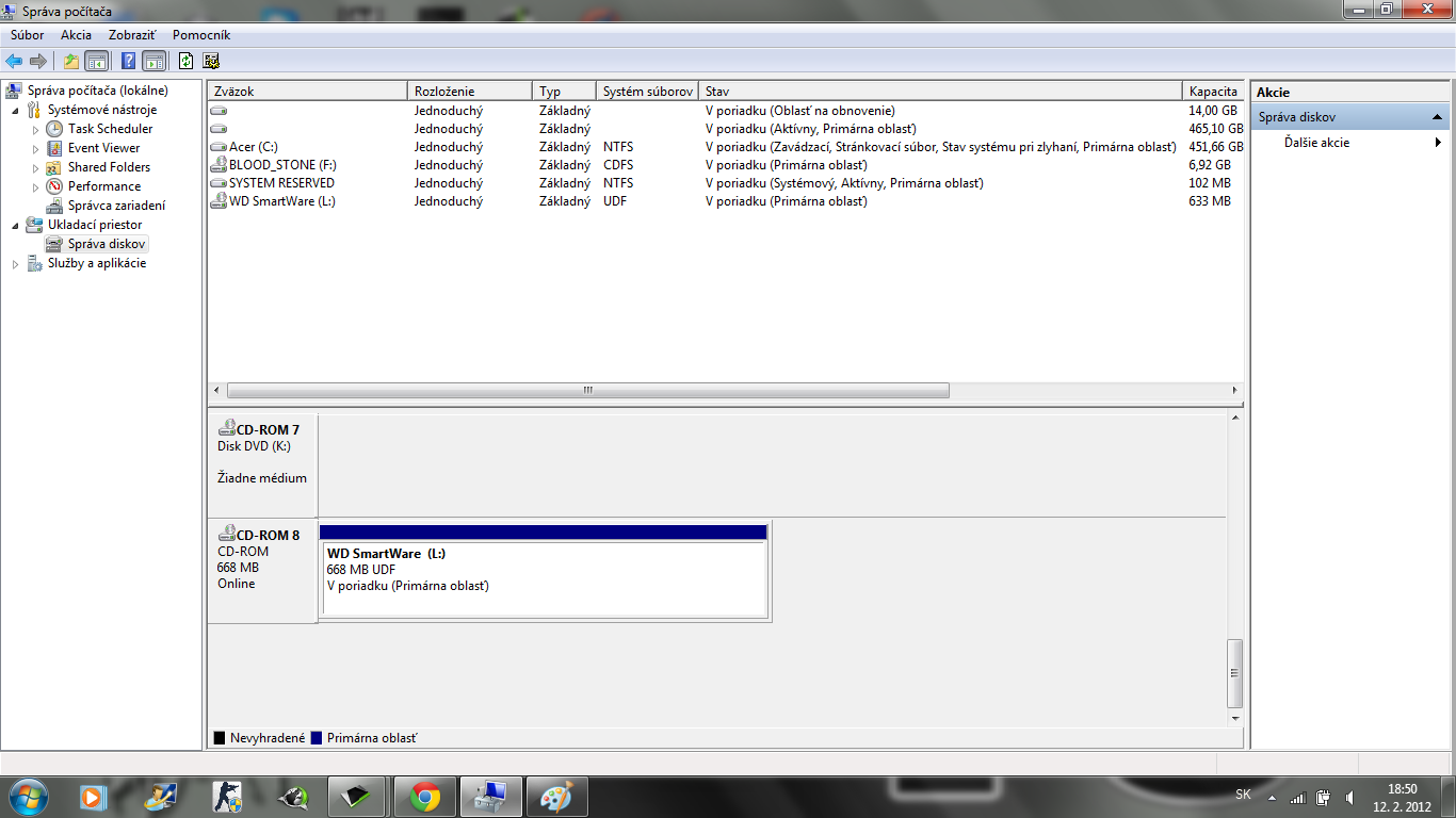 To L je skutečně pouze virtuální mechanika s WD utilitami a zcela nepoužitelným WD SmartWare... Ten disk je naformátovaný na pro Windows neznámý souborový systém, pravděpodobně je to ten druhý odshora v horní části okna, v dolní části by měl být také vidět jako druhá položka. Při odpojení disku by ta položka měla zmizet... Pravý klik, odstranit oddíl nebo naformátovat na NTFS, tím se samozřejmě přijde o všechny data.
