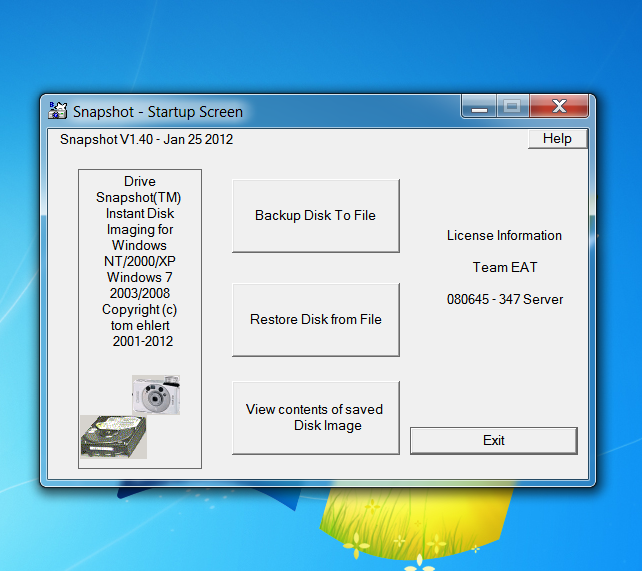 Ten program je trial na 30 dní. Obnova se dá udělat z Windows, DOSu a spouštěcího DOS CD. Zkusil bych jiný , pohodlnější a free program. Windows7 mají zálohování vyřešené myslím docela dobře.