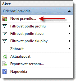 Odchozí pravidla. Program musí mít jméno, jinak to nepůjde.