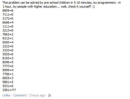 Pro neangličtináře: Tento problém zvládnou vyřešit předškolní děti za 5 - 10 minut, programátoři za hodinu a lidé s vyšším vzděláním za... no, zkuste si to sami.