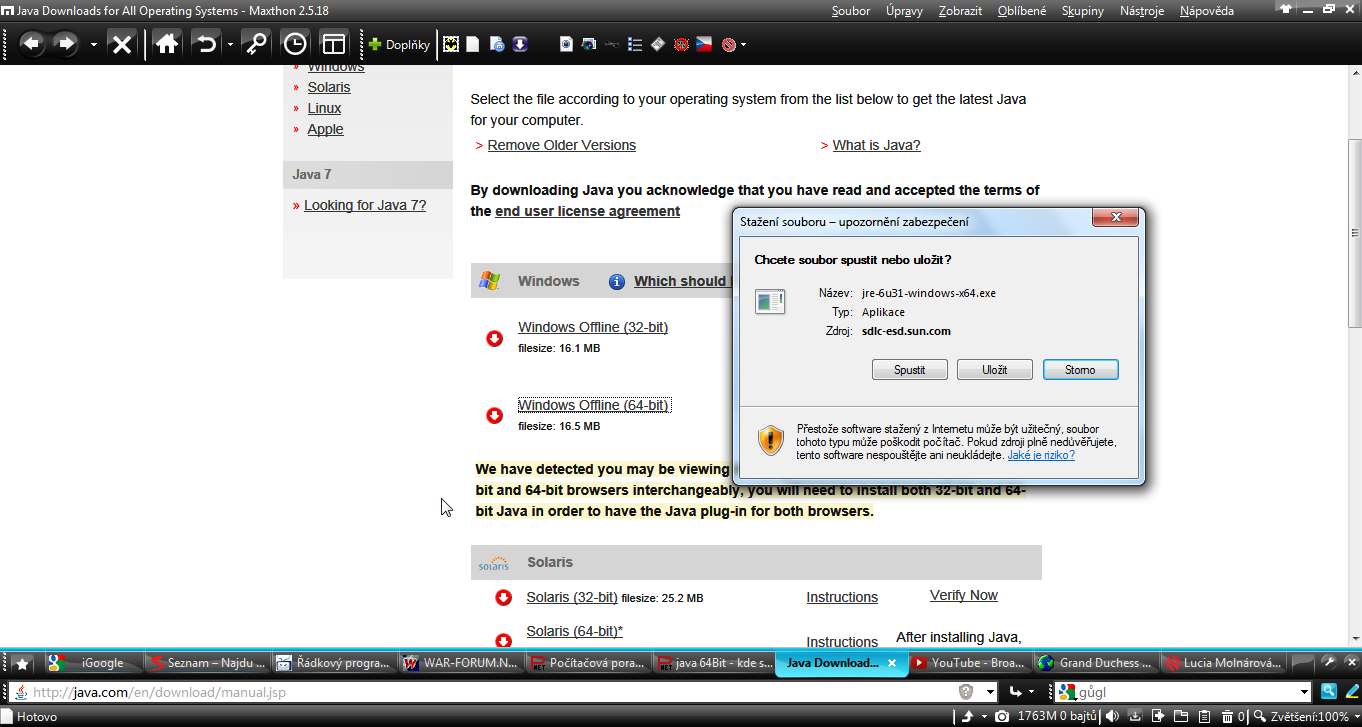 nesouhlasim, ja tam taky nevidim tu 64bit javu pro windows ;)