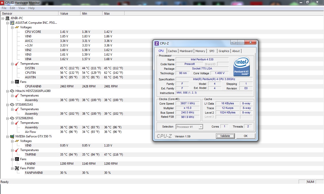 Ahoj, chtěl bych se zeptat, zda mé teploty PC jsou dobré, procesor jsem přetaktoval z 3ghz na 3,6ghz, snad je to v pohodě. Kdyžtak zde máte přílohu, zda je vše v pohodě, nebo co by se mnělo zmenšit, vím procesor se už uchladit více nedá, je to Presscot.