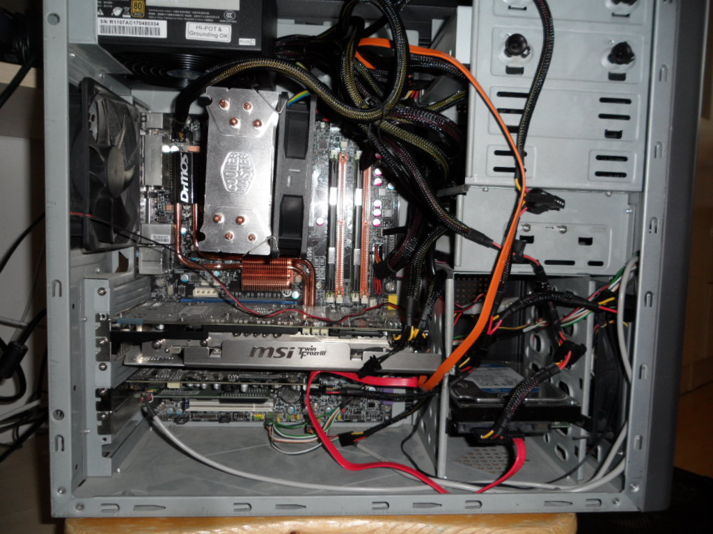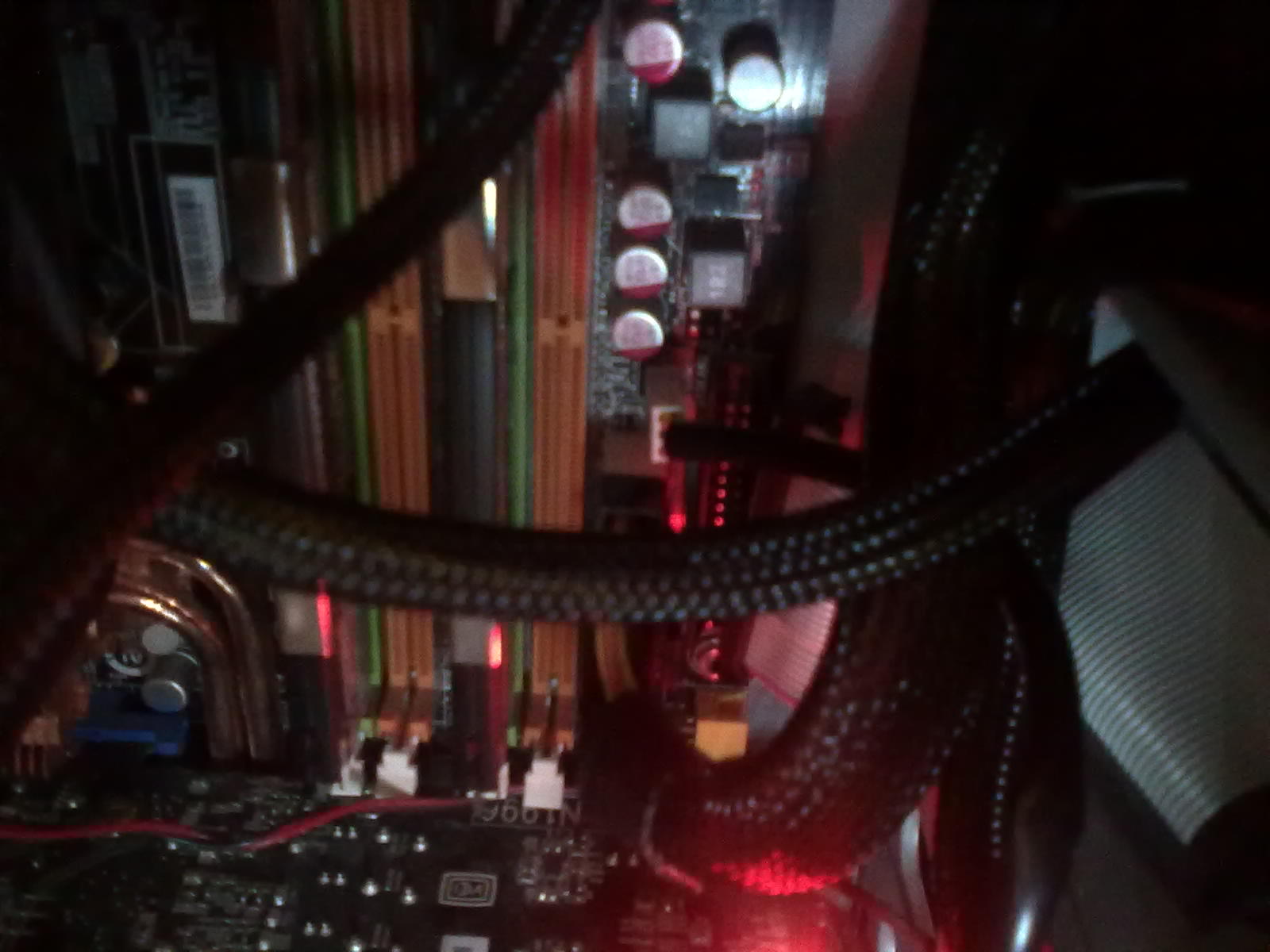Oddělal jsem bočnici,abych tam viděl a zapl.Všechno se rozjelo,zdroj,větráky,chladič na procesoru,grafika,ale za 5 sekund to chcíplo.Odpojil jsem grafiku.Zas se všechno rozjelo a hned zdechlo.Dal jsem reset na desce-červenej čudlík,zatahal za kablíky a kompl se pak rozjel.Po resetu jsem se mrkl do Biosu,že vypnu integrovanou zvukovku a dám paměti na 1066MHz,ale vše zustalo předělaný jak má,ikdyž jsem dal reset,tak je mi to divný.