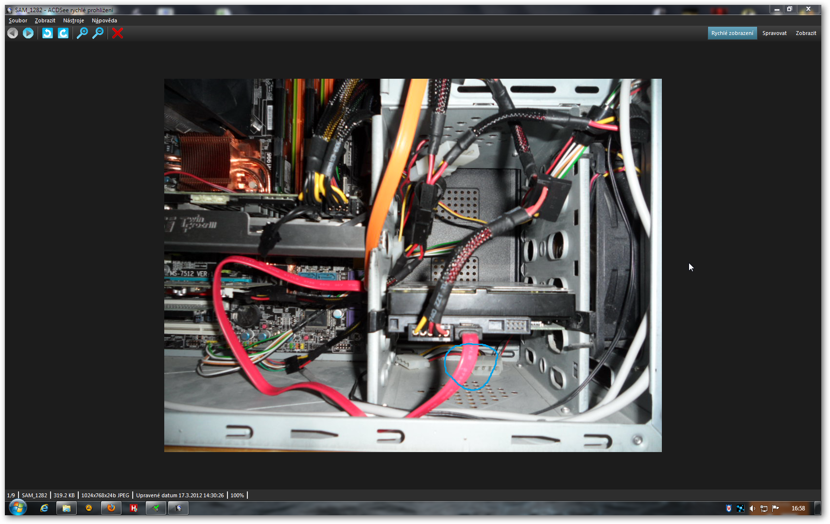 Myslím si totiž,že nějakej z těch tenkejch drátku z větve kde je napojen,disk mechanika,větráky a zv…