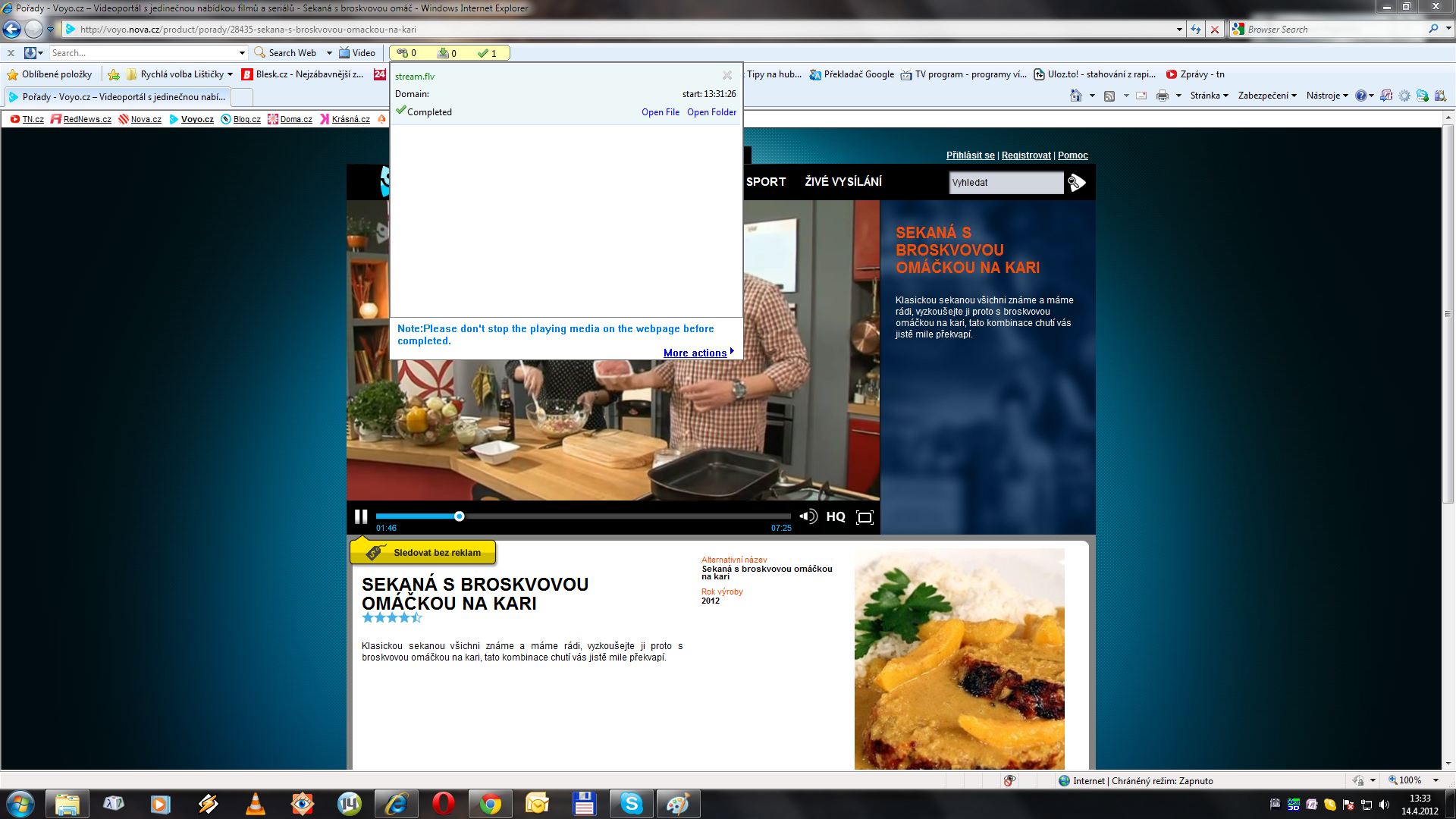 Po instalaci se program integruje do IE, otevrit IE, zatrhnout zobrazeni toolbaru - listy Grab Pro, v Toolbaru zatrhnout "Enable Recording" dale vybrat adresar pro cache a stazene soubory - neni nutne, jit na Voyo.cz, vybrat co chceme tahat, zvolit kvalitu, spustit porad, uprostred toolbaru ve zlutem policku se objevi seznam souboru cekajicich na stazeni, vynechame reklamy s priponou .mp4, potvrdime stazeni souboru s priponou .flv kliknutim na "Download it" - otevre se adresar pro ulozeni, pripadne zadame nazev dle libosti, po teto volbe je zahajeno stahovani. Po stazeni se objevi hlaska "completed" soubor je stazen do daneho umisteni. Cela procedura je dosti zdlouhava, program uklada data z cache browseru, v realnem case, s timto je treba pocitat. Vysledny format je jakesi .flv bezne prehratelne napr. ve VLC playeru. Ja osobne vse ale jeste konvertuji ve Format Factory, aby bylo mozne prehravani v samohrajce Asus Oplay. Cely tento postup pouzivam cca 4 mesice, byl testovan na kratsich poradech, viz Babicovy dobroty. Sracka Voyo.cz ma caste vypadky prehravani, pri stahovani delsiho filmu se muze stat ze se cely proces downloadu prerusi a je treba zacit znova. Pro ilustraci prikladam polopaticky navod v podobe nekolika obrazku, jsou razeny v poradi ukonu jake popisuji. Zna li nekdo lepsi navod, sem s nim, mi zatim vse co bylo na netu popsano vc. Kačera selhava.;-)