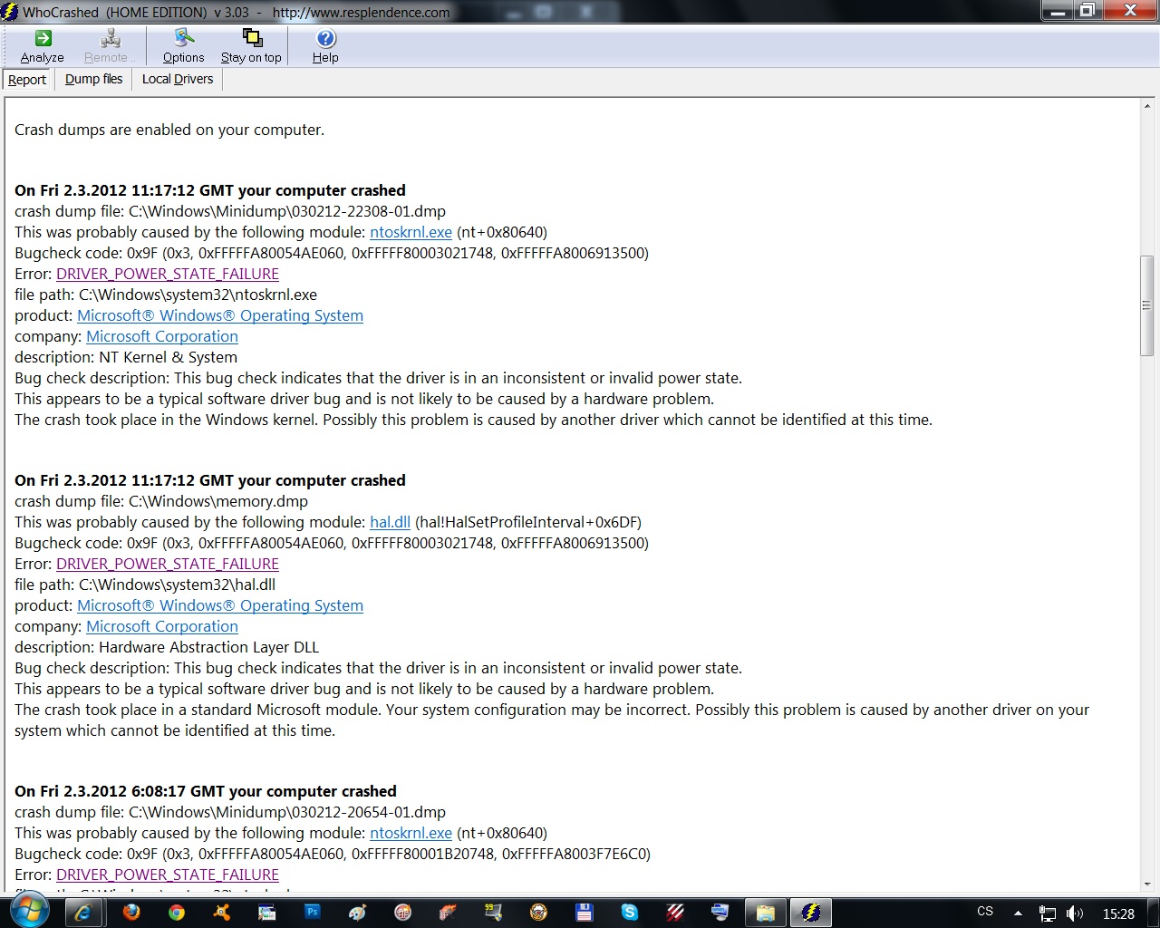 tak zkus whocrashed, co ti o těch pádech řekne.
