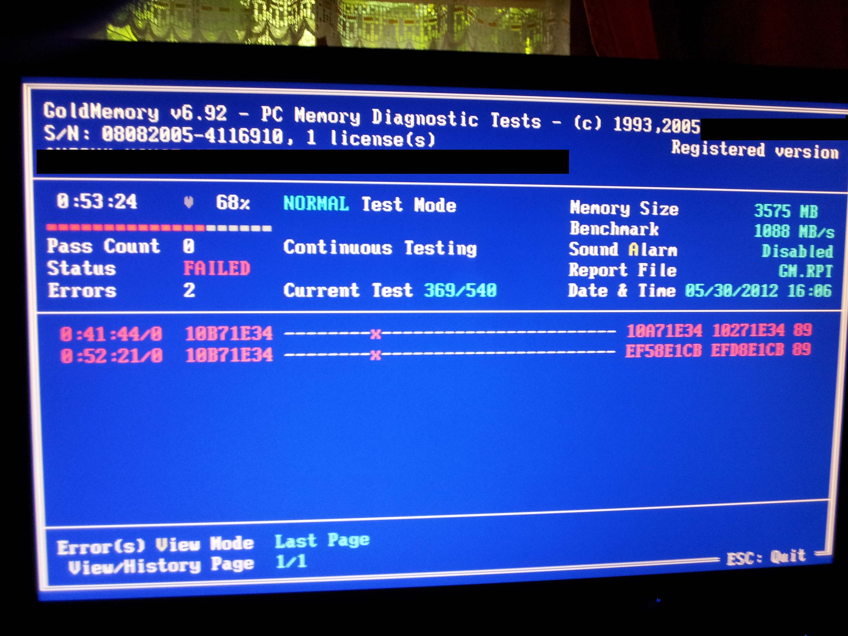 PC odesláno na začátku června na reklamaci s popisem vady (RAM+screeny). Odesláno bez mého HDD ( byl z minulého pc ). Moje HDD zatím používám na starším PC a bez problémů, takže to opravdu bude RAMkami. Zatím mi dali info, že testovali MEMtestem a nic to nenašlo. Upozornil jsem je, že s MEMtestem mi to také žádnou chybu nenašlo, ale s GoldMemory už po 1. hodině ano.
