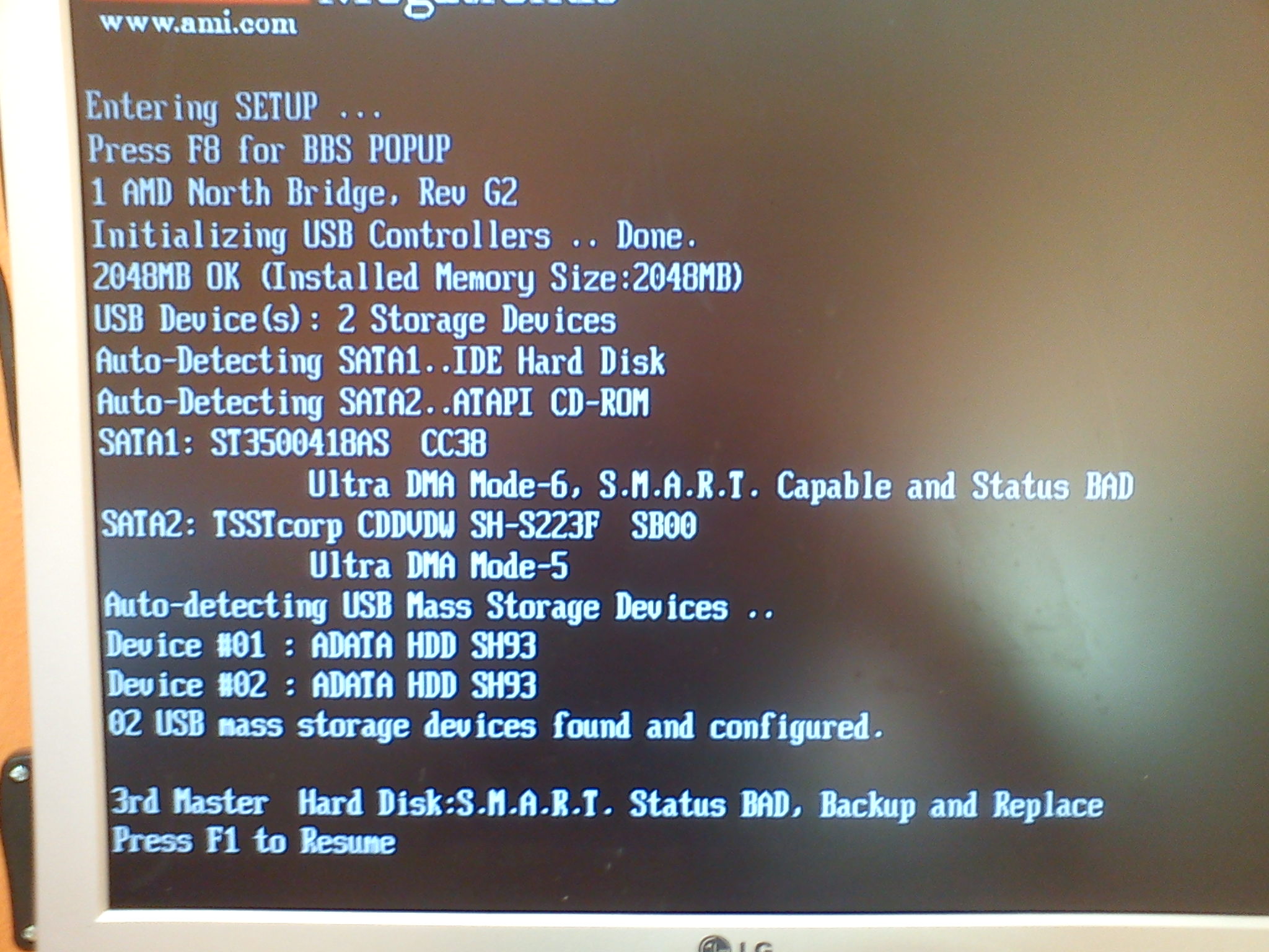 takže mi to napíše hlášku s bootováním, a pak zase BAD HDD, viz foto, na disk je strašně hodně foto.…
