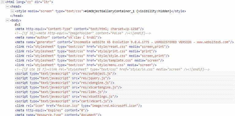 Opera Dragonfly i Firebug vidí docela zajímavou hlavičku. :-/ Ale ve zdrojovém kódu je to dobře. Ješ… nový