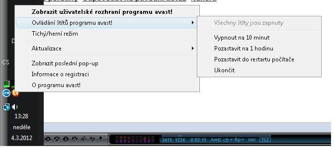 OK, neznam nejnovejsi Avast, driv moznost vypnuti byla taky, ale stejne i po vypnuti stale nebyl Avast 100% neaktivni. Navic ted si uvedomuju, ze nejhorsi to bylo pri startu systemu a to nejpis Avast stale nema, moznost rezidentni stit ukoncit a zapnout ho jednoduse az budu chtit jednim kliknutim mysi, ne aby se po kazdem restartu PC stit rozebehl znovu.