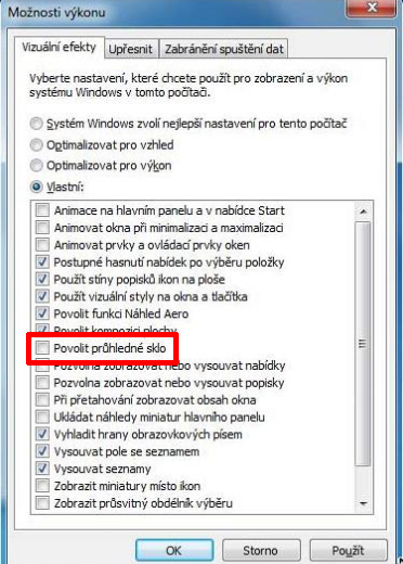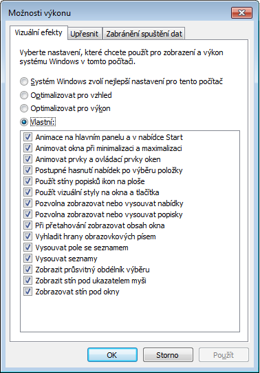 Okno se jmenuje Možnosti výkonu, vidíš? Takže zkus otevřít Google, napsat windows 7 možnosti výkonu…