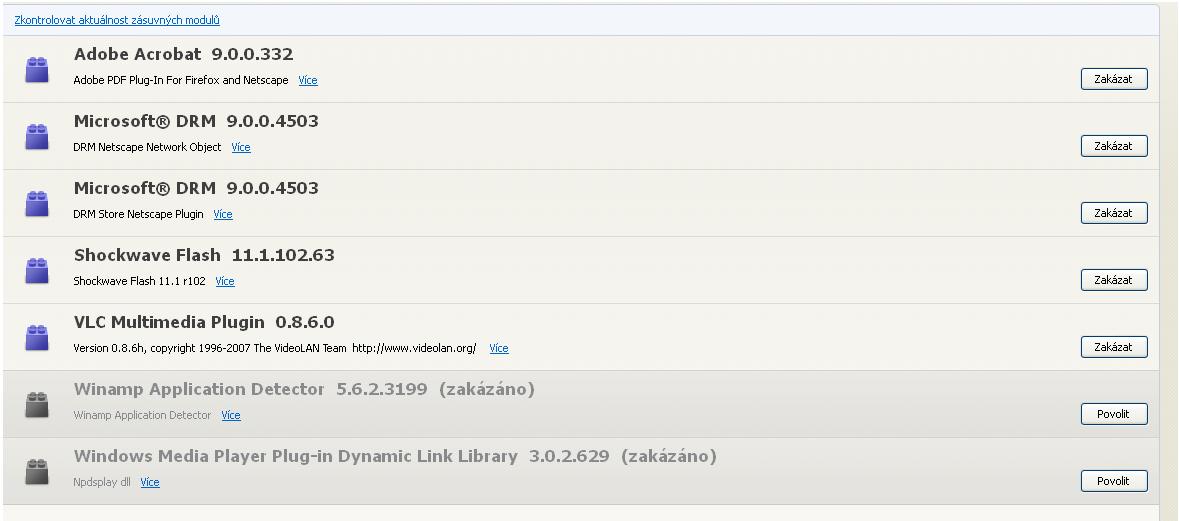 Tak zakázal jsem doplněk Windows Media Player Plung-in Dynamic Link Library 3.0.2.629, nic jinýho tam od WMP neni. Odinstalace je mi neznámá.