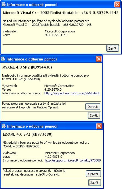 Ale ty 3 okna podemnou to jsou informace o programu ze seznamu přidat/ubrat programy, není to chybové hlášení jen jsem nevěděl co jsou zač viz výše.