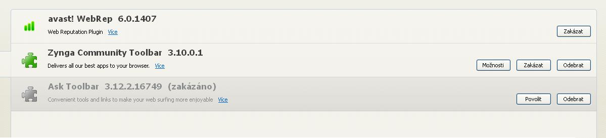 jiné podezřelé doplňky v prohlížeči nejsou?