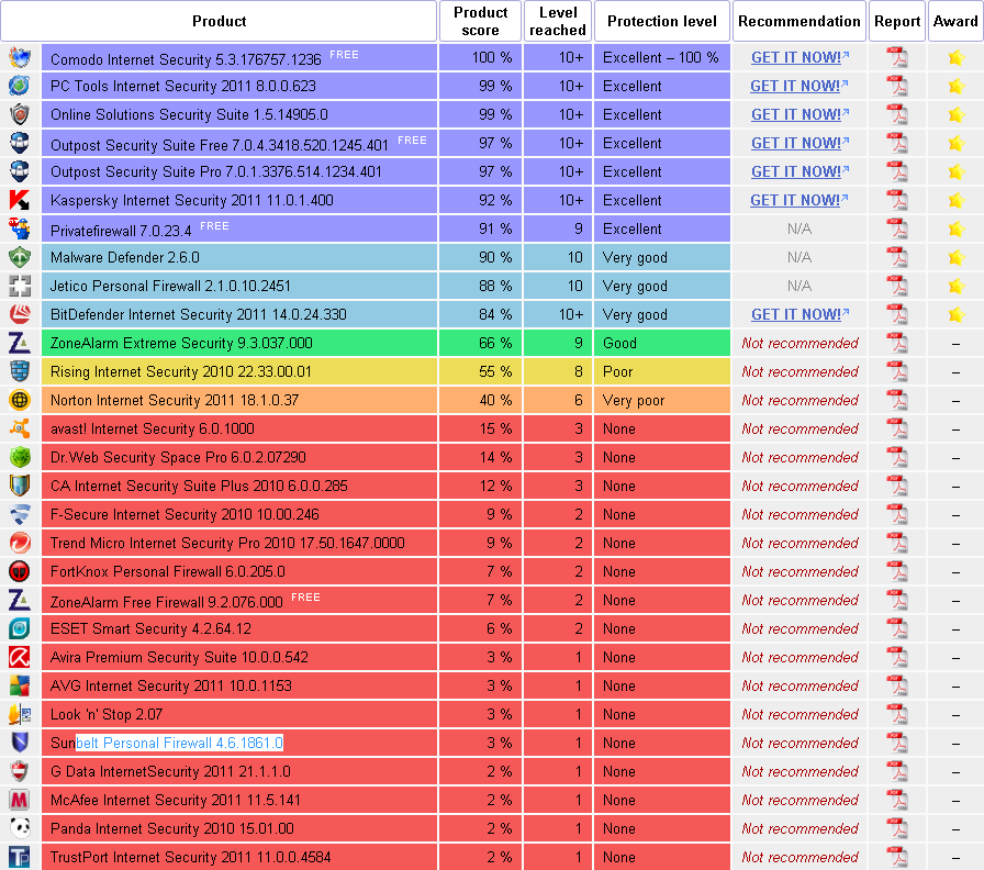 Výsledky testů byl jen doplněk. Také ty testy nejsou aktuální. A třeba výše zmíněné kerio je taktéž dobrý firewall (z vlastní zkušenosti), bohužel verze free nejde nainstalovat na win7, a dle výsledků testů není moc dobrý (ale podle mě lepší než win).