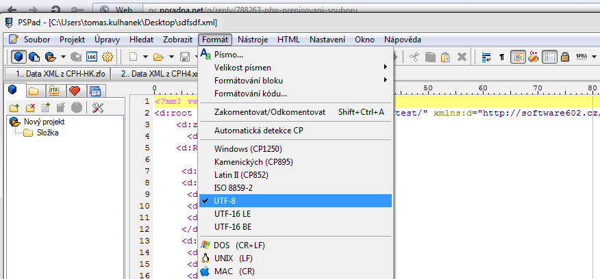 p.s.: prosím využívej kódování UTF-8, osobně jsem měl s Windows-1250 samé problémy