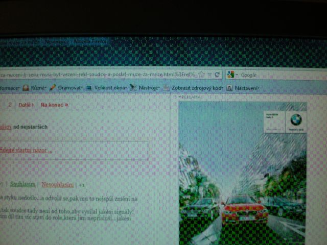 dneska mi monitor Asus předvedl neobvyklý úkaz: prohlížela jsem stránku na Seznamu a zničehonic naběhla přes monitor optická jakoby síťka světle růžové barvy a vytrvale blikala po celé ploše monitoru. Zaznamenala jsem blikání i na video ve foťáku, ale malý snímek třeba postačí.