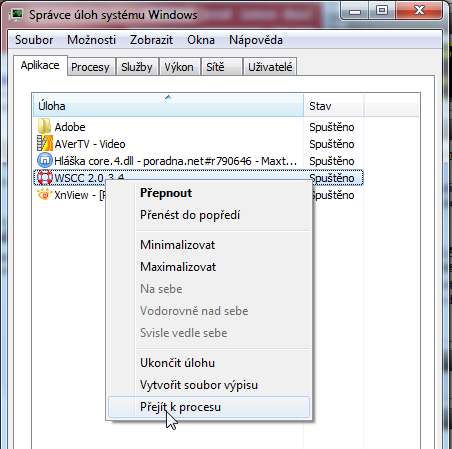 vůbec. když ti to vyskočí, kterému procesu to patří? klik pravou myší na lištu dole/ správce úloh…