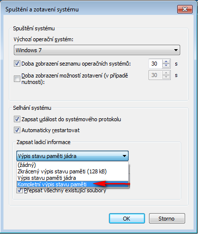 Dobře, pokud by se tedy problém opakoval, tak plný dump uděláte takto: Nastavení plného výpisu dump…