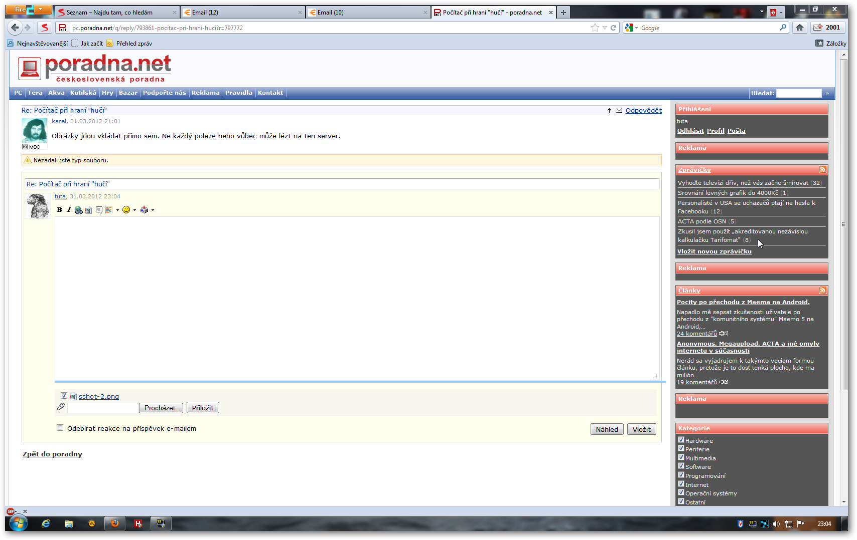 Nevkládejte obrázky ve formátu *.bmp ani obrázky celé obrazovky místo chybových hlásení (na zachycen…