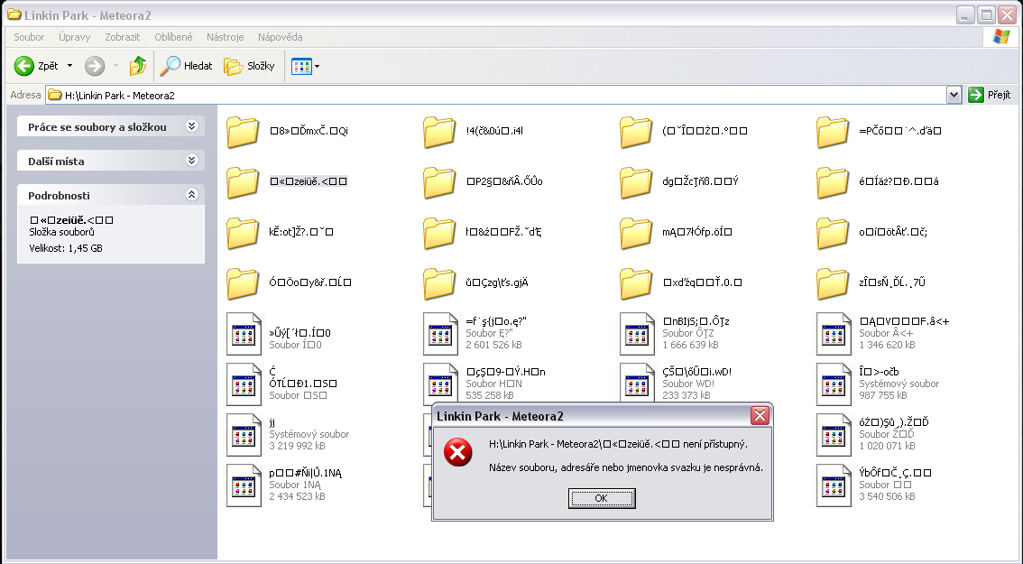 Zkusím-li některou ze složek otevřít zobrazí se chybová hláška viz příloha ipod2.