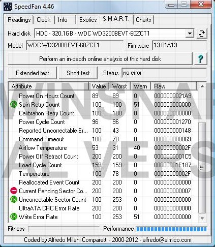 Zkus SpeedFan a načíst si SMART v něm. Ta tvoje aplikace je nějaká podezřelá...