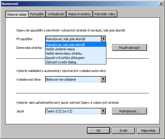 Možná že máš už Operu 12345 a ta si to přenastaví sama, když ti nějaká stránka "shodí" prohlížeč. Chtěl bys aby ti po spuštění Opera načetla ty samé stránky a hned zase spadla?