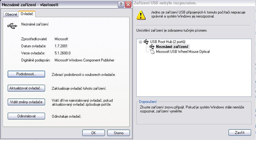 p.s. - píše to chybu s zařízeními: Mouse (nejspíš myš) a Nějaké NEZNÁMÉ ZAŘÍZENÍ - řadiče sběrnice USB.