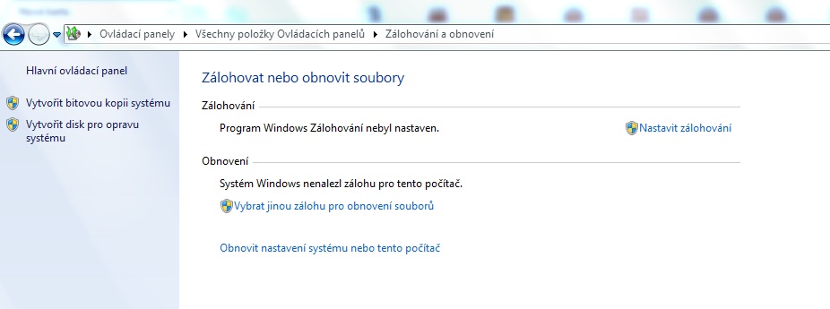 Potřebuji si obnovit počítač ze zálohy bitové kopie systému, ale když se dostanu do té nabídky (Ovládací panely --> Zálohování a obnovení) objeví se mi tohle [http://pc.poradna.net/file/view/9057-bez-nazvu-jpg ]
