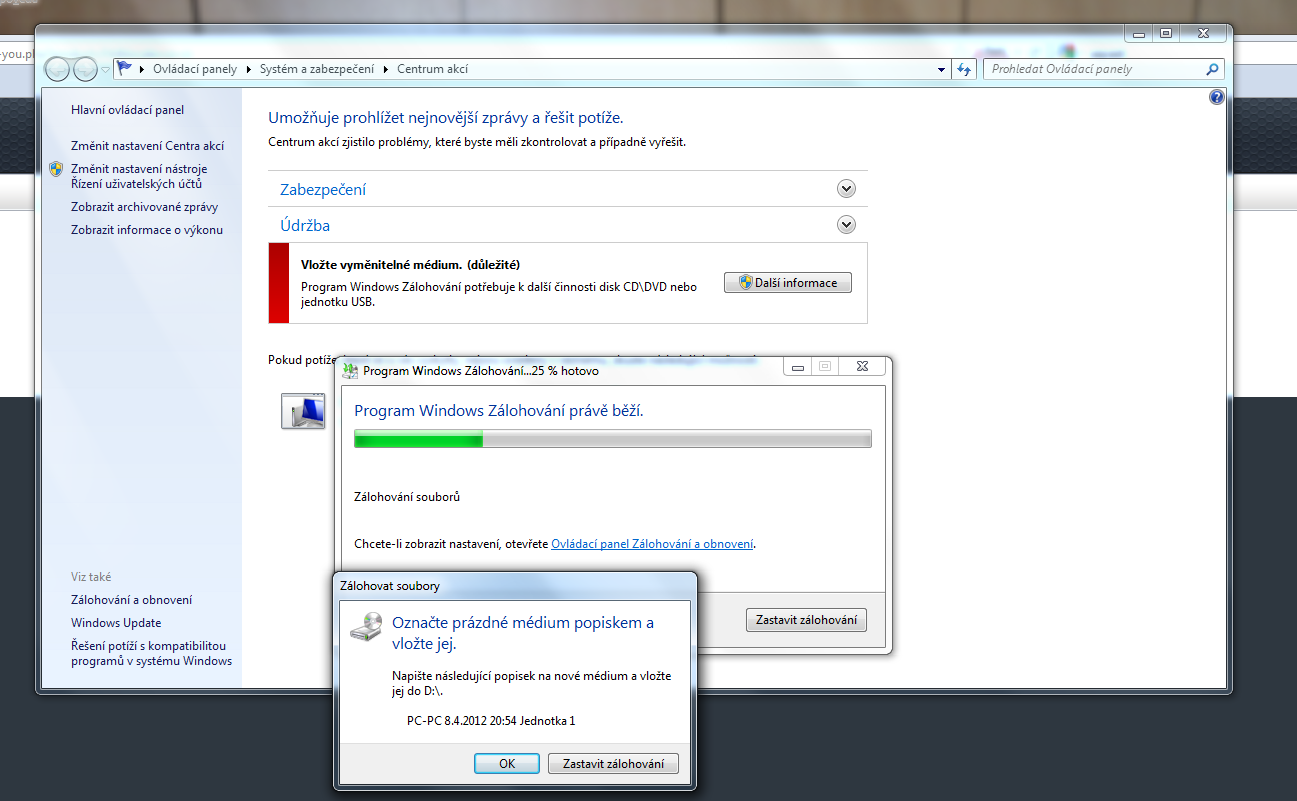 takže zap jsem PC a asi po 15 minutách pořád se nic nemění a je tam tato zpráva (viz příloha)