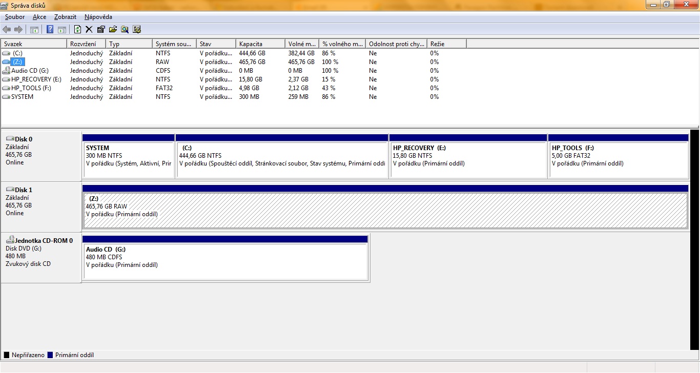 Tady je ten PrintScreen z diskmgmt.msc nový