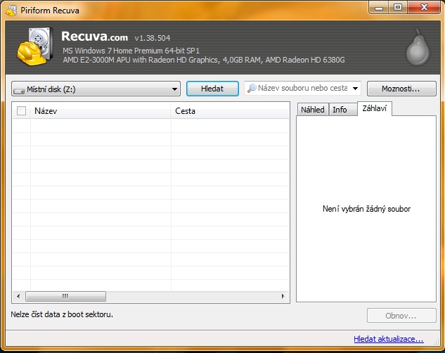 Ta Recuva píše: Nelze číst data z boot sektoru (obr.) nový