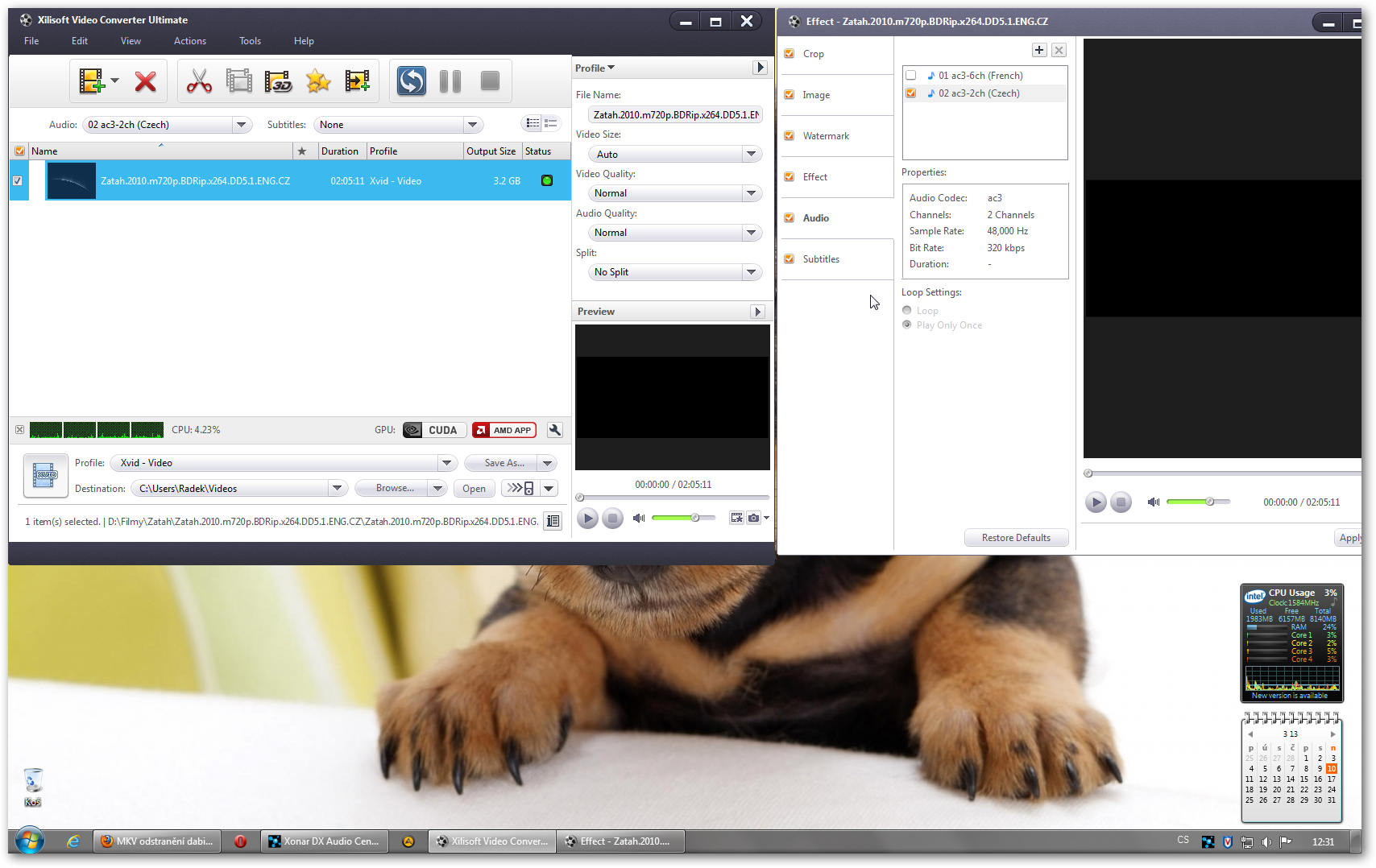 Xilisoft video converter-zadáš do čeho to chceš převést,když je na výběr určíš si řeč,popřípadě titu…