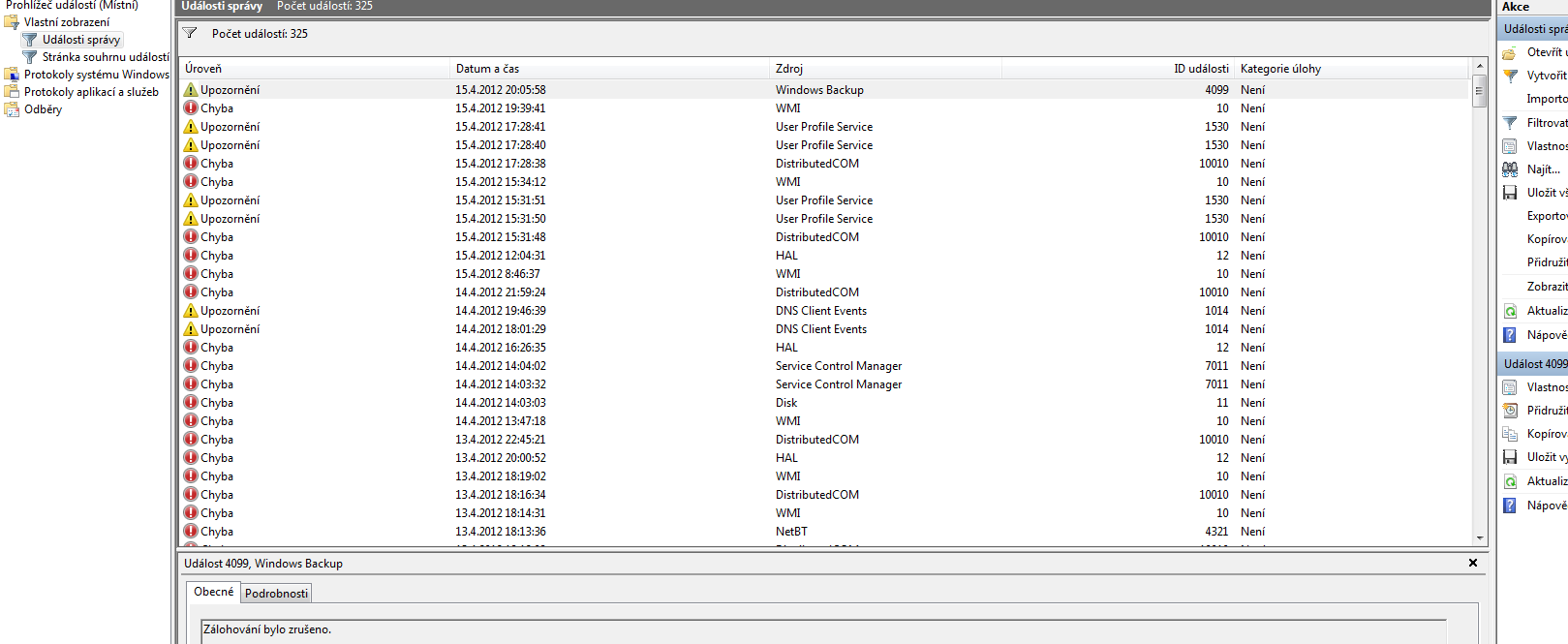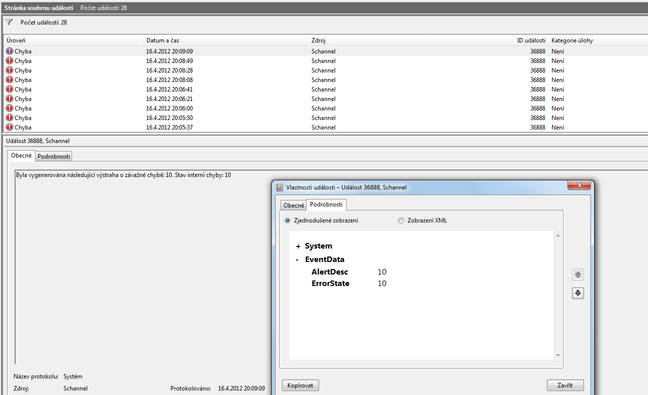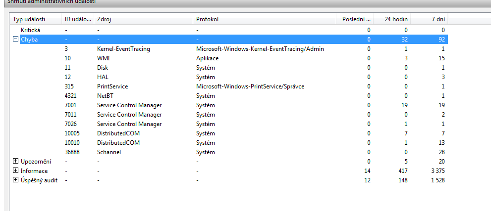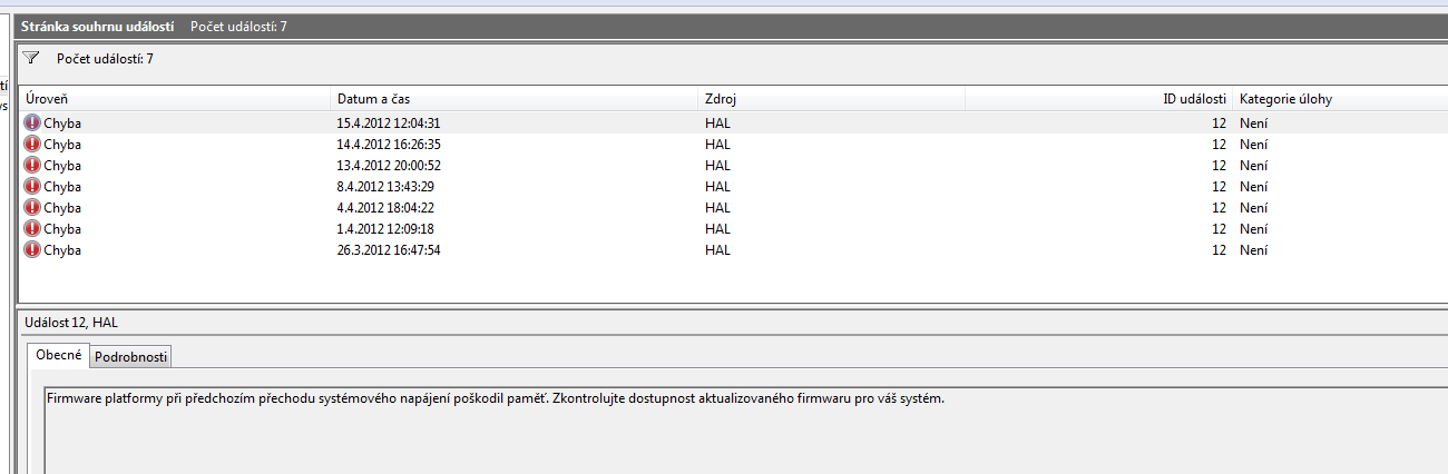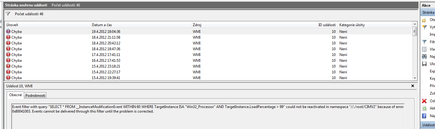 a jen jsem se podíval do prohlížeče událostí a zase nějaké chyby