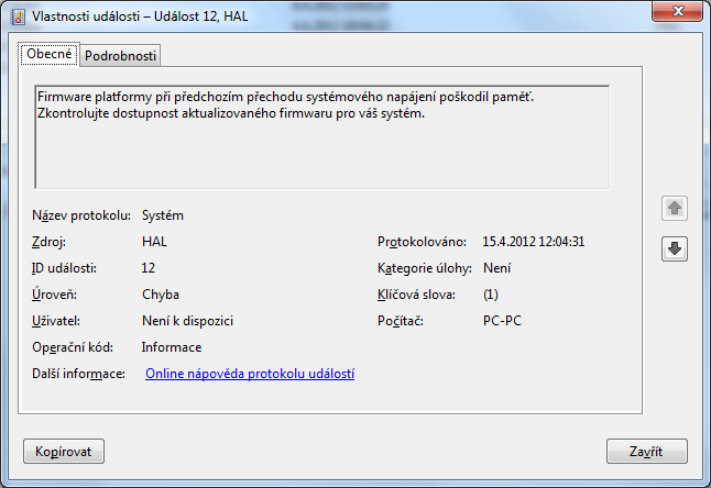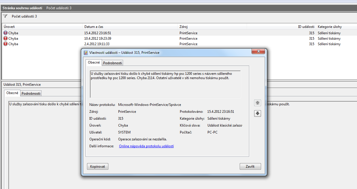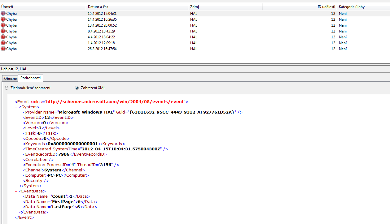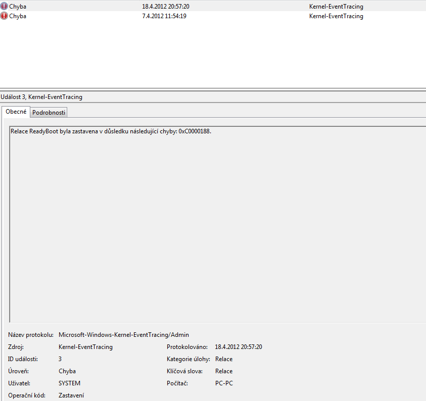a jen jsem se podíval do prohlížeče událostí a zase nějaké chyby