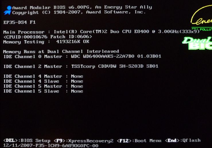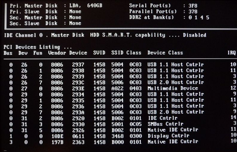 Ako prve skusit vliezt do BIOS a load defaults, save&exit. Nejaka zmena? Ako druhe skusit novu CMOS baterku (alebo aspon premerat). Ako tretie skusit v BIOSe vypnut dodatocny IDE/SATA radic, ptz nejaky tam je (Bus 3 device 0, posledny na vypise). Ak je integrovany na MB tak vypnut v BIOSe ak je v PCI (alebo PCIe) tak tu kartu vytiahnut.