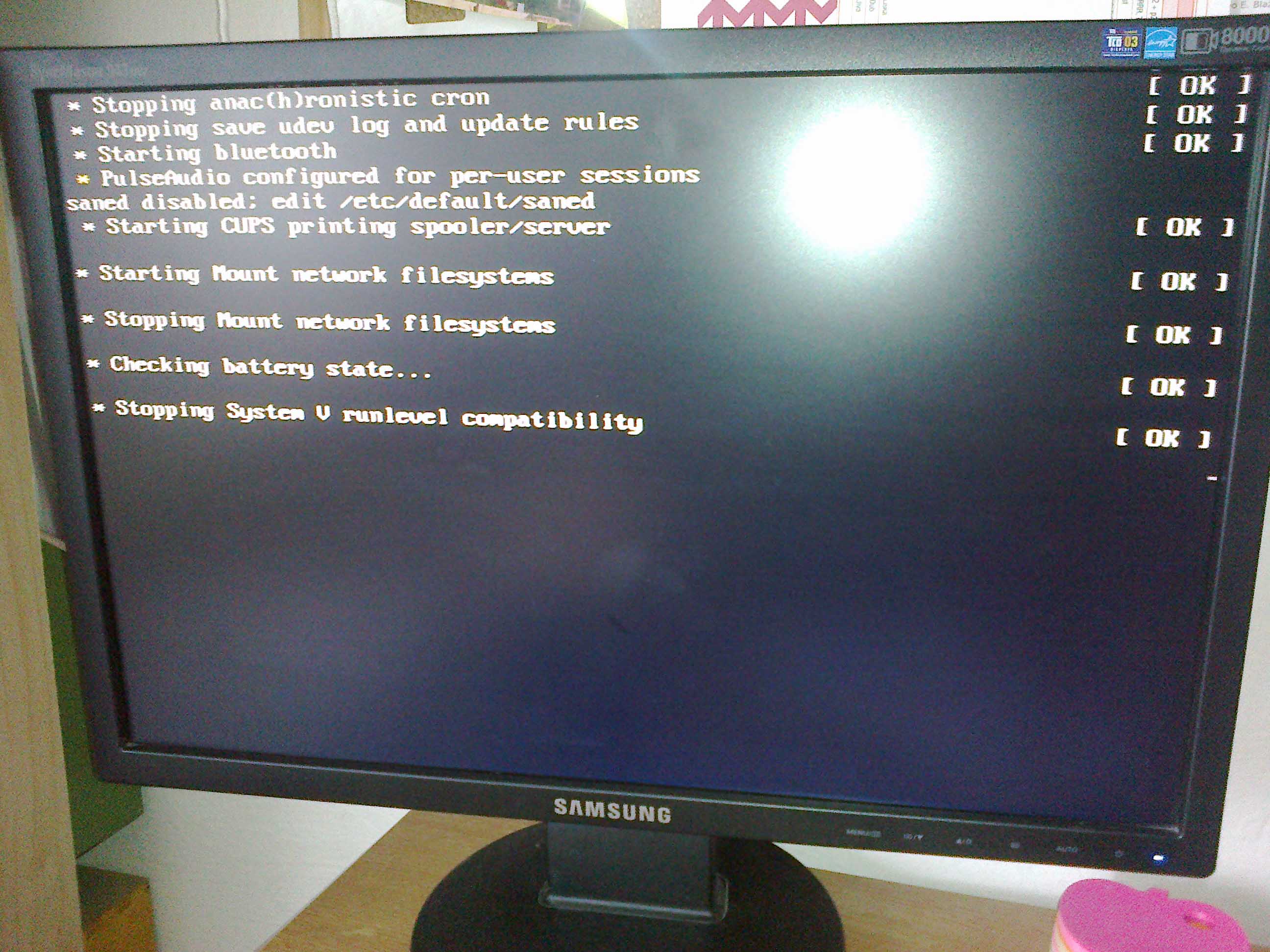 Ubuntu, aktuální, po výběru systému, kdy tam mám dualboot s win 7, vyberu tedy Ubuntu. Pak jen problikne načítání Ubuntu ... a vyskočí obrazovka viz foto: