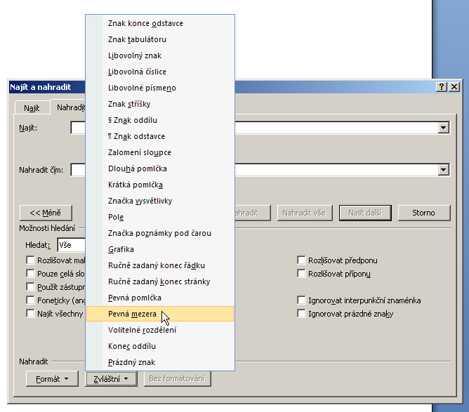 1. Napiš si někam v tom dokumentu pevnou mezeru pomocí ctrl+shift+mezerník. Označ a vyjmi, třeba pom…