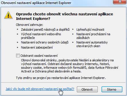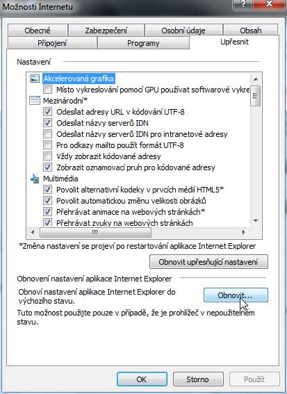 nevím jestli tento obnovit je stejný jako obnovit v záložce "zabezpečení" - zádrhel bude asi tam. s…