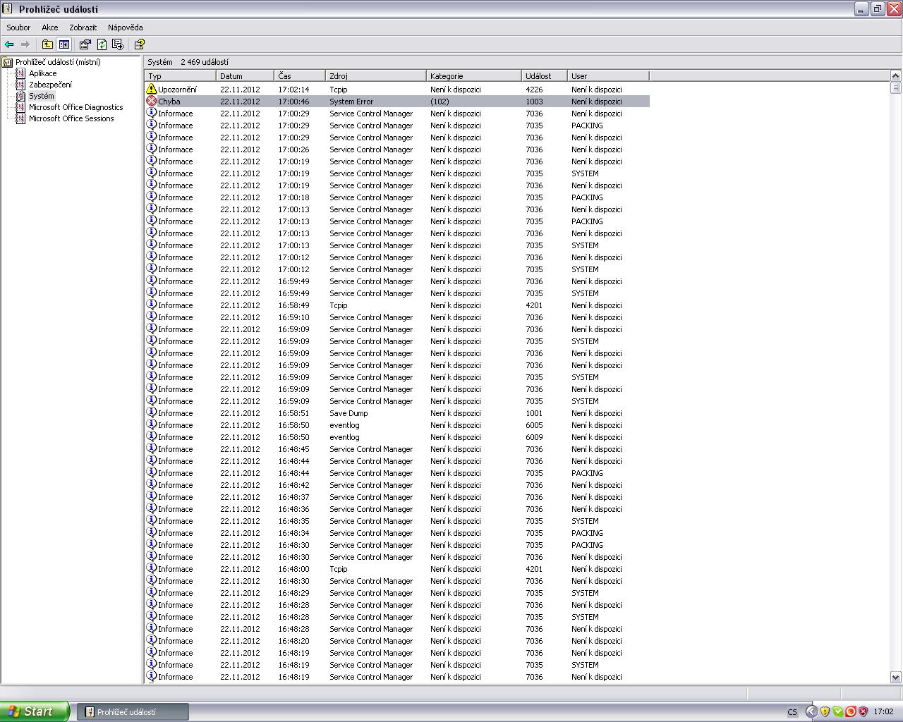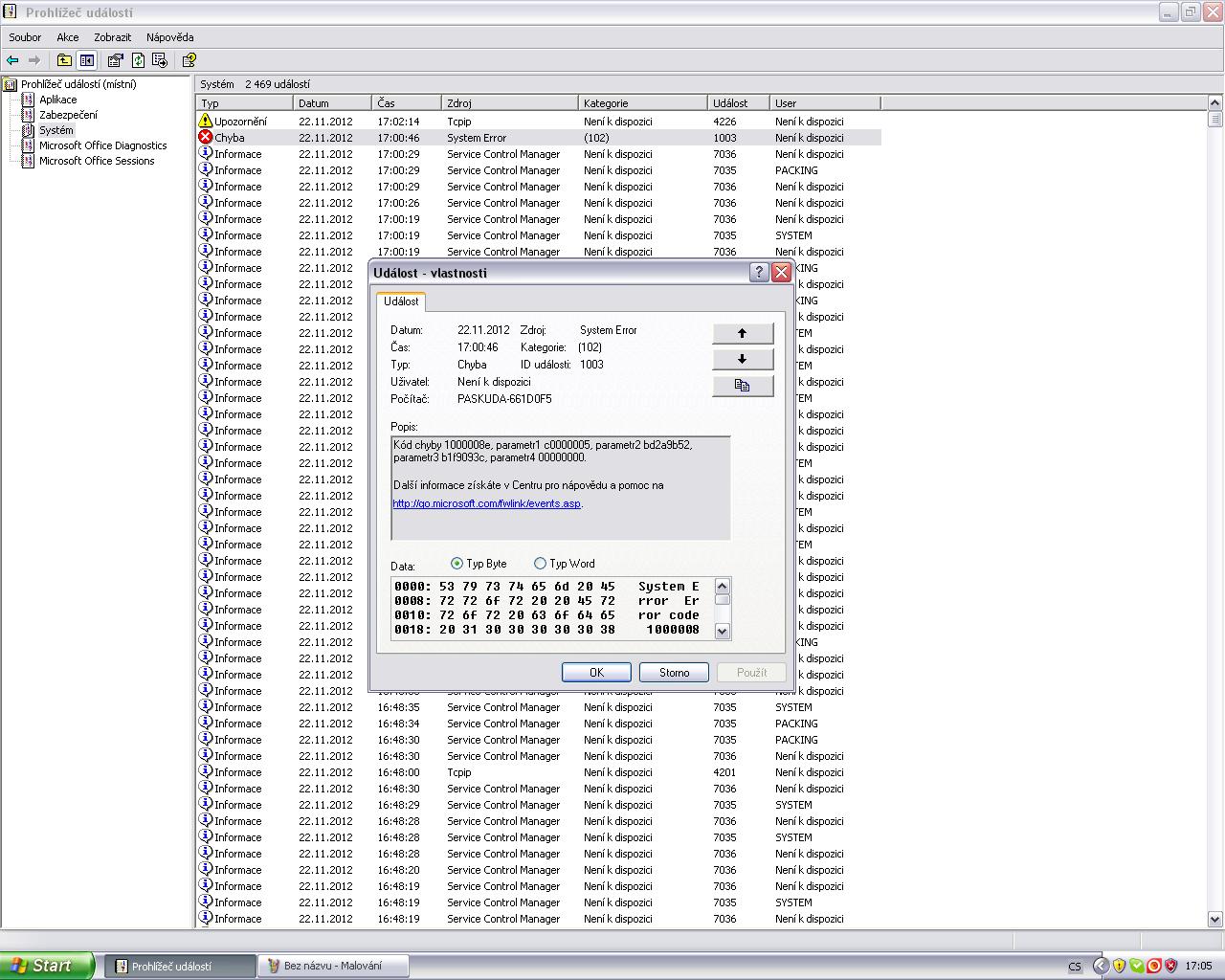 budeš se divit, ale ještě jsem tu nezažil případ, kdy někomu řekneš že se má podívat do prohlížeče událostí, a on by se nezeptal: "kde na svém počítači ve svých windows najdu prohlížeč událostí"?