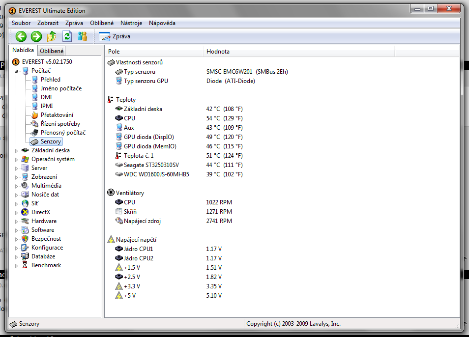 Teploty 1. CPU / 1. jádro 41 °C (106 °F) 1. CPU / 2. jádro 41 °C (106 °F) 1. CPU / 3. jádro 41 °C (1…