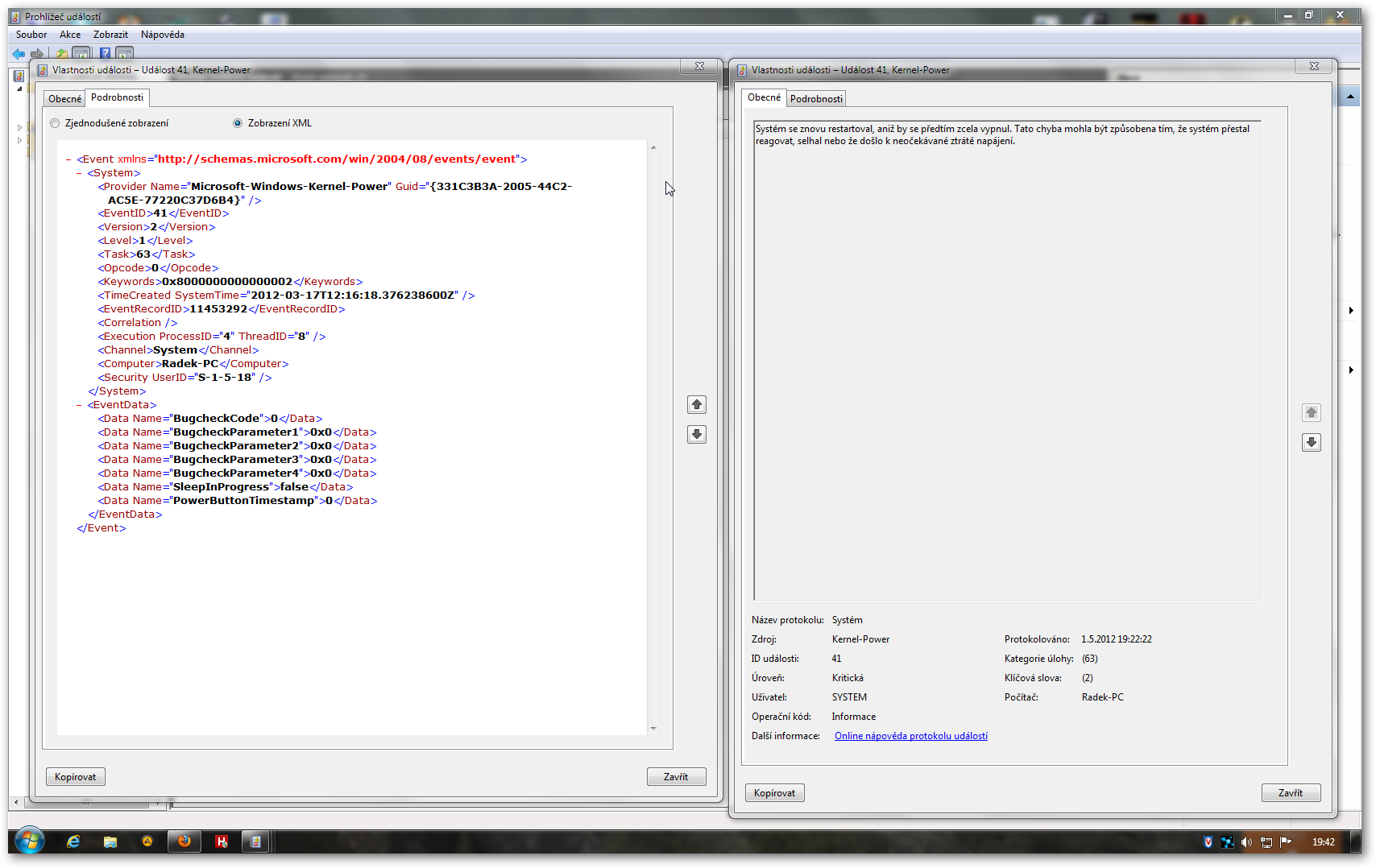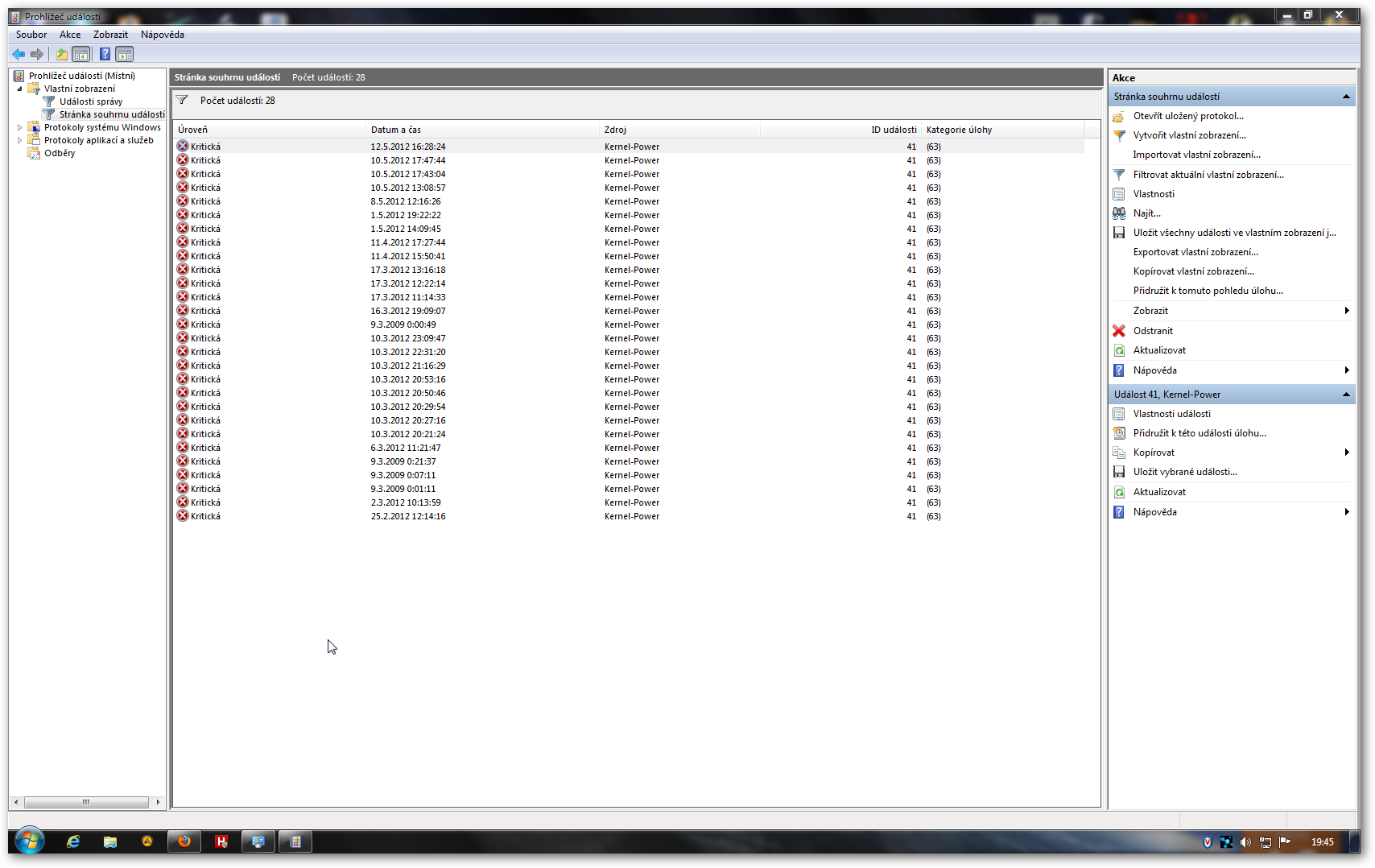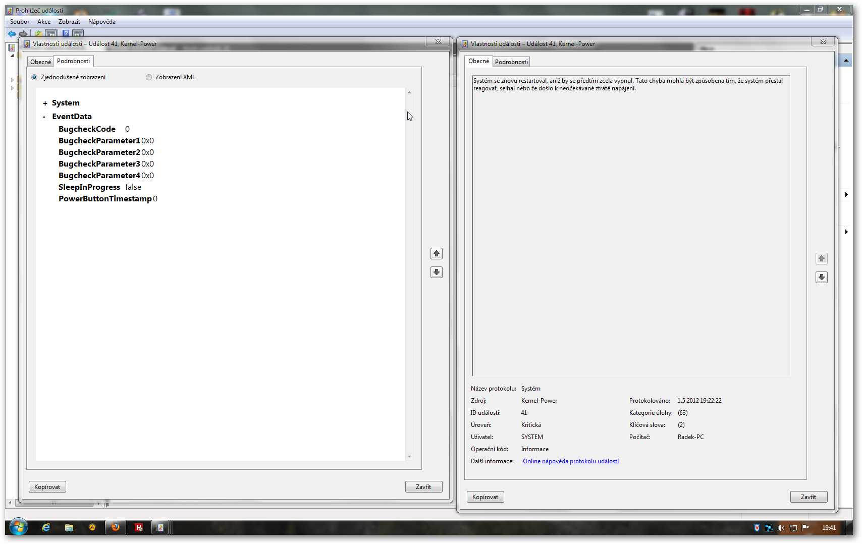 na hodiny s certifikátem se zhluboka vykašli. id41, kernel power všimni si, že bugchecky jsou nuly=…
