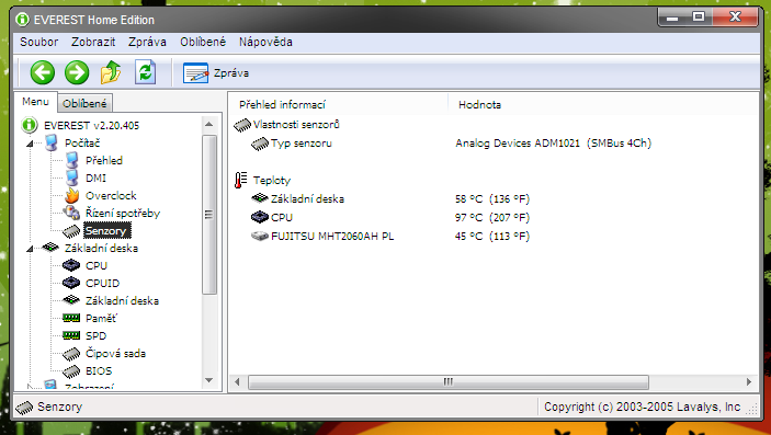 Prosím vás, mám celkem problém, žádám někoho, kdo řešil podobný problém, aby mi sdělil své osobní zkušenosti. Mám starší notebook s procesorem Intel Pentium M 1.86 Ghz a i po důkladném vyčištění žeber chladiče, ventilátoru a vůbec celého notebooku se mi stále dost přehřívá procesor, pokud procesor vytížím tak během 1 sekundy mám 85°C na procesoru a rychle roste, poté se již teplota ustálí a drží se na 96°C. Když je procesor v klidu, tak má 50°C. Dále se mi celkem dost zahřívá i (podle EVERESTu základní deska), nevím jestli tím není myšlen například chipset na 65°C. Chtěl bych se tedy zeptat: