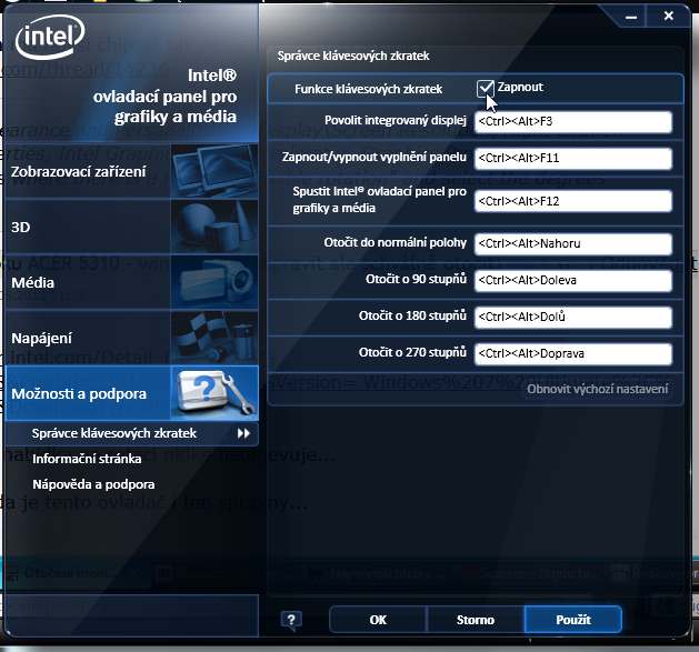 nemusi to byt v klavesovych skratkach, skus ten postup co som citoval vyssie (cez ovladacie panely),…