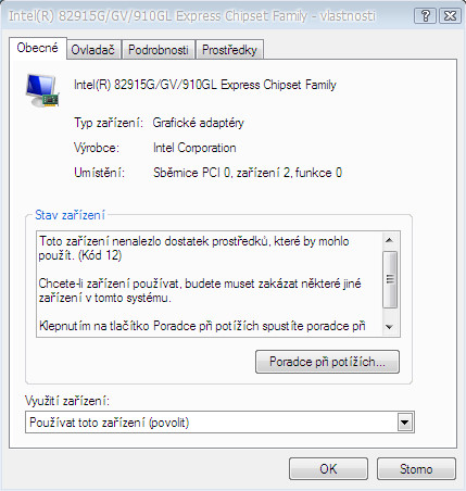 potrebuju opravit graficky adapter Intel(R) 82915G/GV/910GL Express Chipset Family nejde mi prilozim…