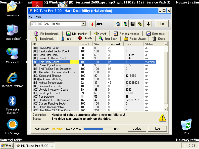 Moc tomu HDTune nerozumím... ale hned na první oko mi tam moc nesedí tohle... Spin Retry Count... n…