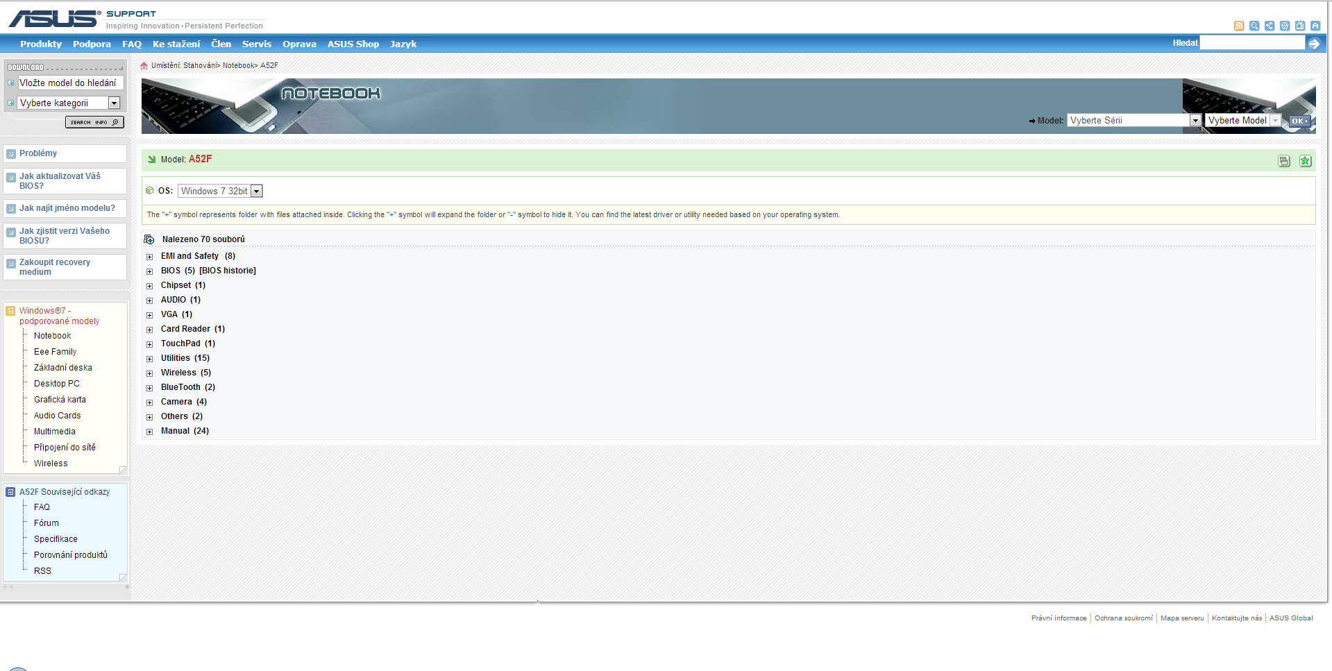 Tady máš stranku http://support.asus.com.tw/download/download.aspx? SLanguage=cs-cz